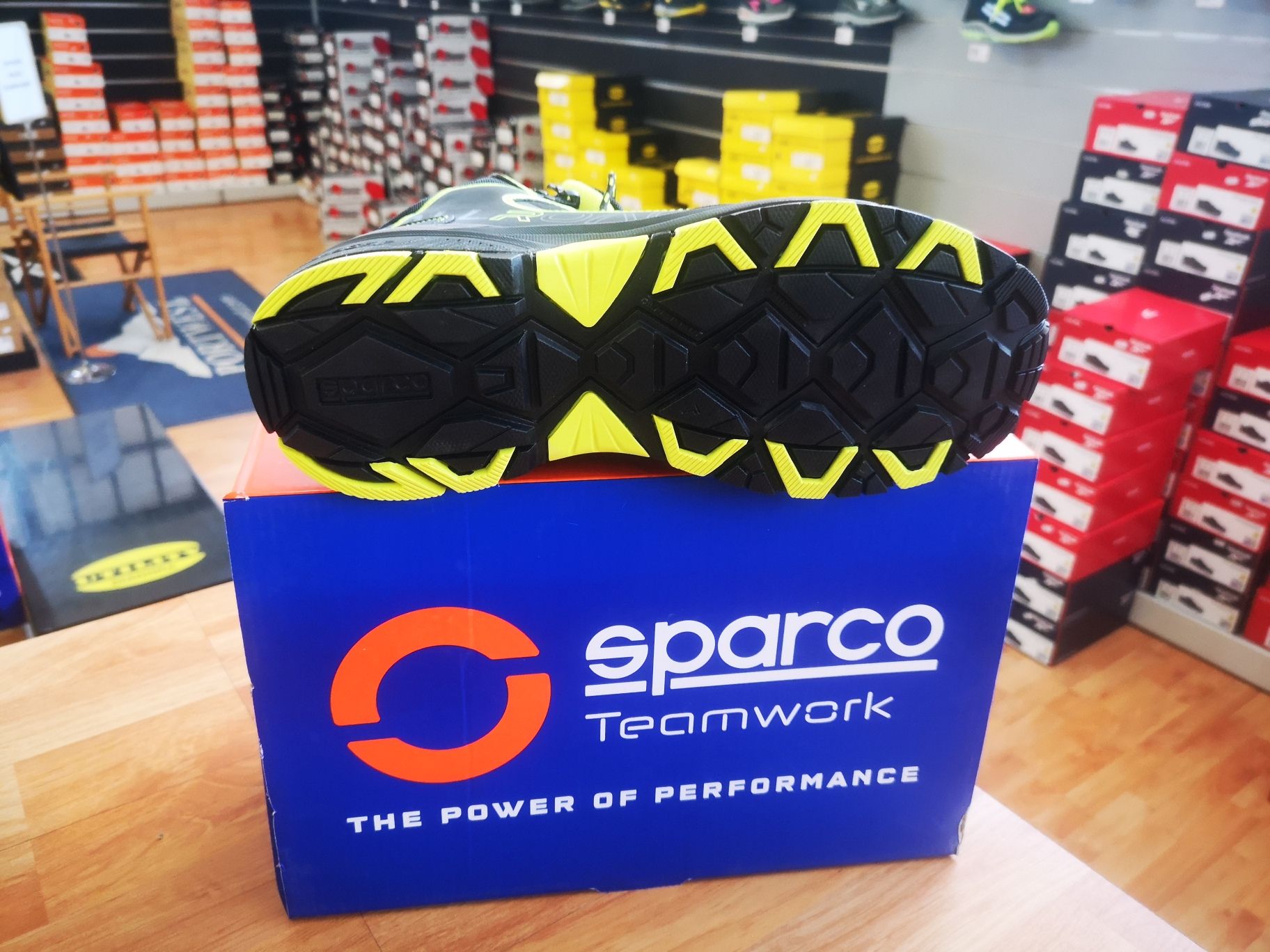 intersuola in phylon e battistrada in gomma nitrilica HRO con assorbimento di energia sul tallone.